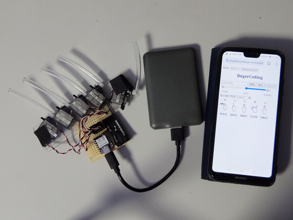 | 操作用Webアプリ | fingercoding.html, fingercoding.js, webio2.js ブラウザの機能としてWebBluetoothAPIおよびWebMidiAPIを利用 パソコン(Windows11), スマートホン(Android)のChromeブラウザで動作確認 |