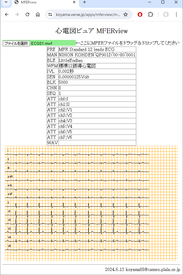 MFER形式[1]の心電図データ(○○.mwf)を表示するWebアプリを作ってみました。