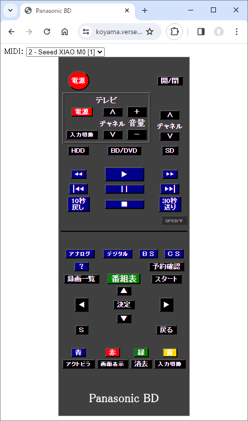 | リモコン デバイス | マイコン | XIAO samd21 など (webio2.inoを書き込んでおく) |