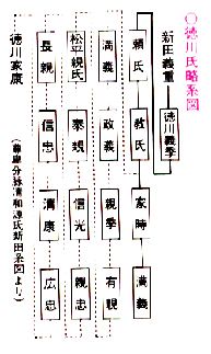 徳川家の先祖は源氏です。源氏は清和天皇から始まります。 平安時代の末期に東北で後三年の役がおこりました。この内乱をしずめたのが清和天皇から何代か後の源義家(みなもとのよしいえ)です。義家の子の義国は関東に住みました。その長男義重が新田(群馬県)に住みました。 さらに、義重の子義季(よしすえ)が徳川の地を治め徳川義季と名乗りました。 その後、鎌倉幕府が倒れ、南北朝時代となりましたが徳川氏の子孫は南朝方として戦ったため、領地を失い流浪の旅に出ました。やがて、松平郷(今の愛知県豊田市)に移り松平氏のもとに身を寄せ松平を名乗りました。代々相続し、家康の時に徳川の姓(せい)にもどりました。有名な徳川家康の誕生です。 このような歴史があるため、世良田・徳川の地は徳川氏発祥(はっしょう)の地として、将軍家の厚い庇護(ひご)を受けるようになりました。